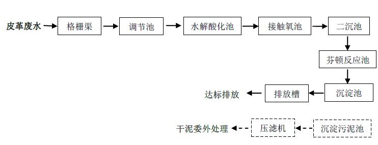 皮革生產過程中,大多數的水污染物是在濕加工過程(浸灰、鞣制)產生。皮革加工廢水中含有動植物油脂、毛屑、肉屑、泥沙、灰渣等懸浮物和角質蛋白、紅血蛋白等溶解性有機物,以及皮革加工過程中填價鉻、硫化物、氯化物等無機鹽類。大多數皮革廠一般采用Ca(OH)2、Na2S脫毛和鉻鞣技術,此廢水因含有較高濃度的鉻鹽和硫化物等毒物,因此廢水處理工藝復雜,費用較高。