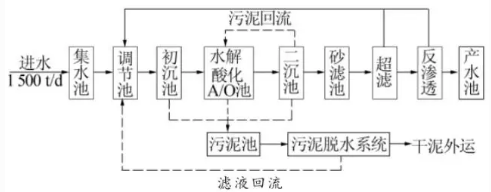 設(shè)計處理規(guī)模1500m3/d,回用水量800m3/d,回用率50%以上。
