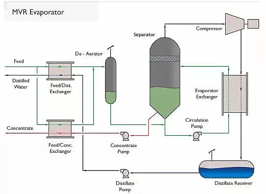 mvr蒸發器被稱為“機械式蒸汽再壓縮”蒸發器,是一種高效的節能蒸發設備。
